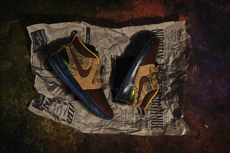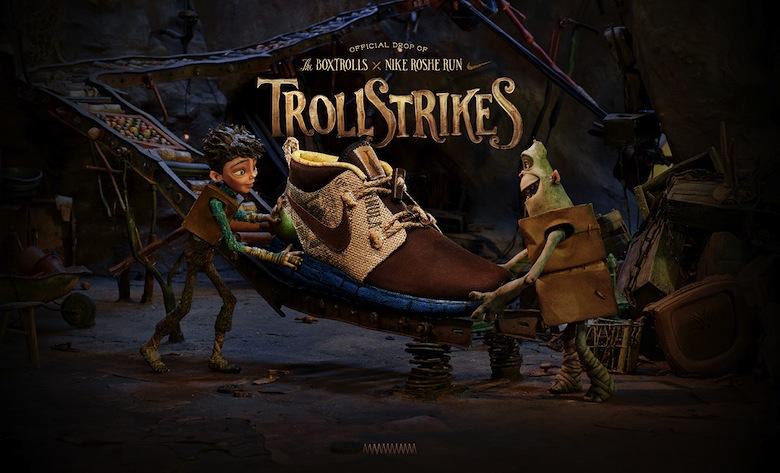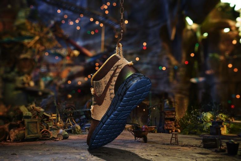 Nike lance aujourd’hui une édition limitée de Roshe Run pour coïncider avec la sortie du film d’animation The Boxtrolls. Conçu par Tinker Hatfield lui-même, le modèle dispose d’un upper en cuir marron et en toile de jute. La semelle arbore un imprimé rappelant les murs en pierre alors que l a boucle du talon et les lacets sont réalisés à partir de ficelle. La boite de la paire a elle aussi été pensée aux couleurs du film et en reprend le slogan « Dare To Be Square ». L’ensemble est complété par un sac en toile de jute sérigraphié, un papier de soie inspiré des premières pages de journaux ainsi qu’une paire de chaussettes Dri-FIT Elite recouverte d’un imprimé. Cette collaboration ne sera pas disponible chez les revendeurs Nike mais uniquement sur eBay où une vente aux enchères à lieu en ce moment même. Les fonds récoltés seront reversés à l’Adoption Exchange Association (association pour la protection de l’enfance et l’aide à l’adoption).