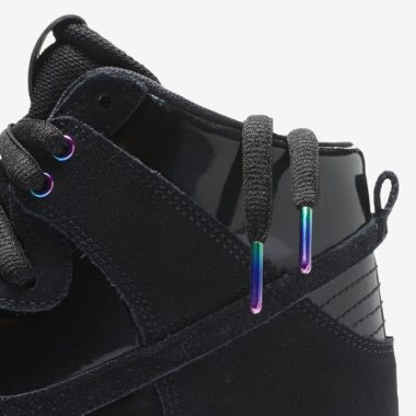Une paire de Nike SB Dunk High avec un traitement holographique pour le mois d’août 2017.