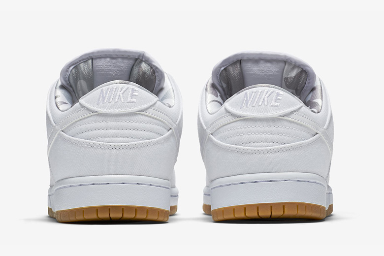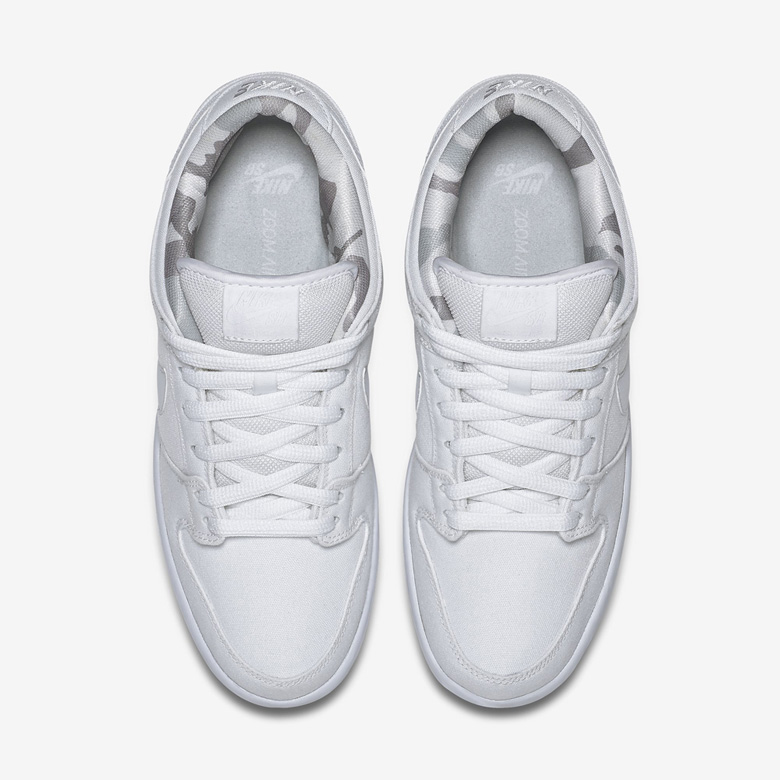 Cette Nike SB Dunk « Tokyo II » disposera également d’une empeigne en toile blanche et d’une semelle gomme mais sera dotée d’une languette en mesh, d’un swoosh en cuir et d’un intérieur en camouflage gris assez discret.