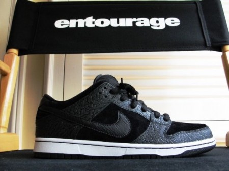 Pour célébrer l’arrivée de la dernière saison de la série Entourage un SMU (Special Make Up) a été imaginé sur une Nike SB Dunk Low. Celle-ci est très sobre mais plusieurs détails intéressants sont présents sur la paire : elephant print, logo d’Entourage sur l’étiquette ainsi que l’inscription « The End » sur la semelle intérieure. Découvrez d’autres images de cette paire dans la suite.