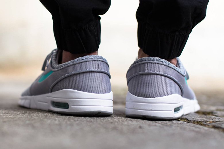 En effet, la Nike SB Stefan Janoski Max sera dotée d’un coloris gris avec quelques touches de bleu turquoise disposées au niveau du Swoosh, de la languette ainsi que sur la bulle d’air.