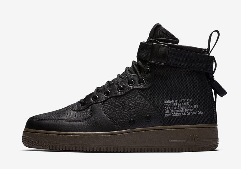 Cette silhouette est née de la fusion entre la Nike Special Field Boot et de la Nike Air Force 1. Afin de lui donner un style unique, la firme de l’Oregon n’hésite pas à s’inspirer de l’univers militaire. Les premiers coloris ont connu un vif succès auprès des collectionneurs. Pour cette édition, la Nike SF-Air Force 1 Mid revêt une teinte noire pour plus de sobriété.