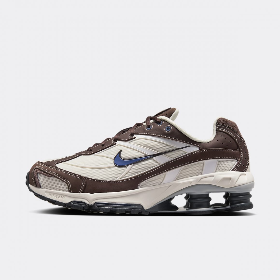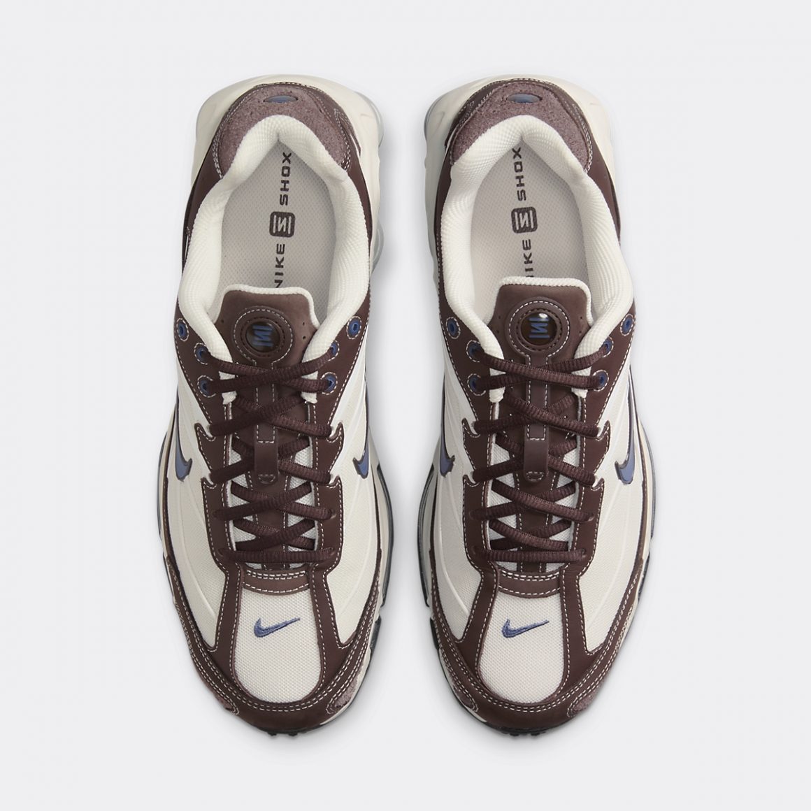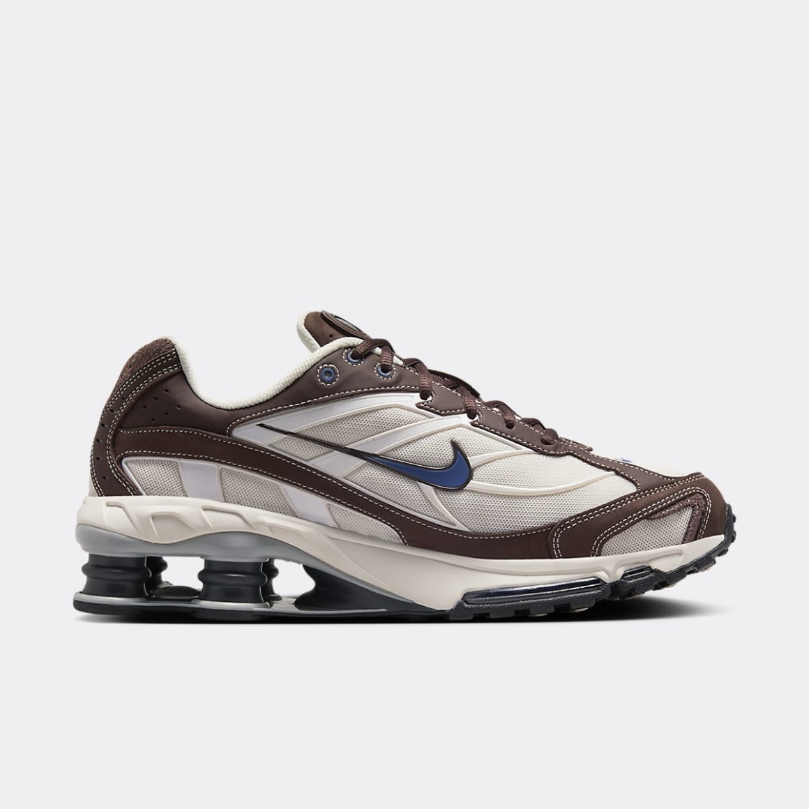 Pour 2025, Nike revisite la Shox Ride 2 dans un coloris inédit. La Nike Shox Ride 2 Baroque Brown Diffused Blue combine des tons riches et terreux, mêlée à des accents subtils de bleu, ce qui reflète une esthétique contemporaine tout en restant fidèle à l’héritage du modèle. La paire présente une tige majoritairement crème en mesh, traversée d’empiècements en TPU assorti. Ce mesh est renforcé par des empiècements en cuir sud marron, dont les coutures blanches ajoutent du contraste à la paire. Ces empiècements habillent les gardes-boue, le talon et les passages de lacets. Ces derniers portent des lacets assortis sur une languette en cuir suédé. Des touches bleues ajoutent du dynamisme à la sneaker et se montrent sur les Swoosh latéraux, ainsi que sur le mini Swoosh sur la toebox. Ils se marient au œillets supérieurs et aux logos Shox du talon et de la languette. La paire repose sur une semelle intermédiaire crème, dont l’avant porte deux unités d’Air visibles, et l’arrière, quatre colonnes Shox noires. Une semelle extérieure noire finalise cette nouvelle déclinaison de la Shox Ride 2.