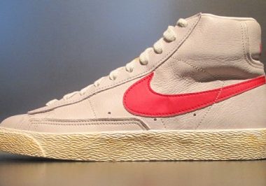 Nike vient de ressortir aux USA de jolies Blazers en cuir toujours avec une petite touche vintage. Le jaune sur la semelle n’est pas forcément très joli mais heureusement facile à effacer. En revanche la forme du modèle et les matériaux semblent d’excellente facture. Deux coloris sont sortis : blanc/bleu et blanc/rouge.
