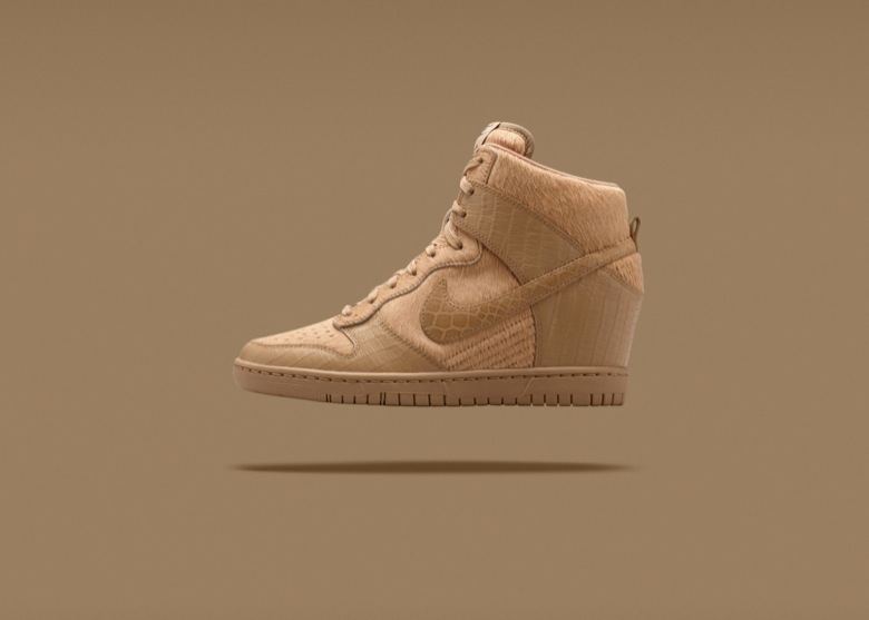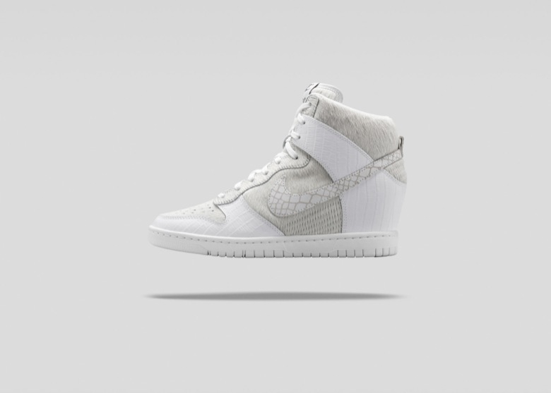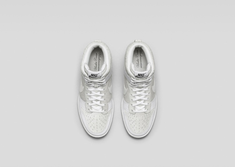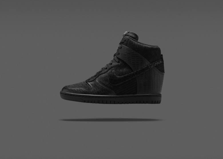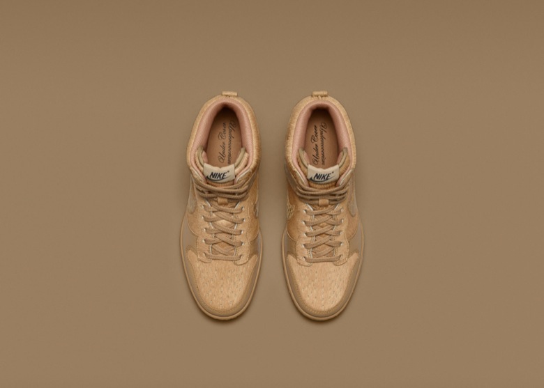 La marque américaine ne semble pas lui en tenir rigueur et Jun Takahashi a eu cette fois-ci l’opportunité de travailler sur une silhouette féminine de la gamme Nike Sportswear. Son choix s’est porté sur la version « wedge » (avec son talon intérieur) de la Nike Dunk, la Nike Dunk Sky Hi.