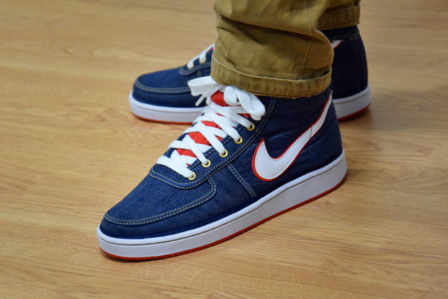 Cette Nike Vandal Hi rappellera à quelques-uns un autre modèle basketball décliné de la même façon au début des années 2000, la Nike Blazer, pour le marché asiatique. Son design s’inspire en effet d’un jean : empeigne en denim, surpiqures et oeillets de la couleur de rivets… La marque a également eu la bonne idée d’ajouter des lacets légèrement plus épais. Cette Nike Vandal Hi Supreme Denim, de la collection Spring 2014, est en vente sur SNKRS.