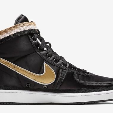 Les deux paires de ce drop sont fidèles à la construction de la mouture originale. Chaque chaussure bénéficie d’une empeigne à tige haute caractéristique de ce modèle qui est construite entièrement en nylon. Les straps à la cheville des deux paires sont tricolores et reprennent les principales couleurs de chaque mouture. L’équipementier de l’Oregon a appliqué un premier coloris Black/White-Metallic Gold sur l’une des chaussures. La paire est à dominance noire et son Swoosh possède un traitement métallisé doré qui caractérise ce pack de Vandal. La seconde paire, elle, est essentiellement rouge et la virgule latérale grise répond aux mêmes critères. Une semelle blanche constitue le trait commun de ce duo au look indéniablement vintage. Les deux modèles de ce pack seront proposés avec deux jeux de lacets lors de l’achat comme vous pouvez le découvrir sur ces clichés officiels. Ils reprennent respectivement la teinte principale de la sneaker et celle du Swoosh.