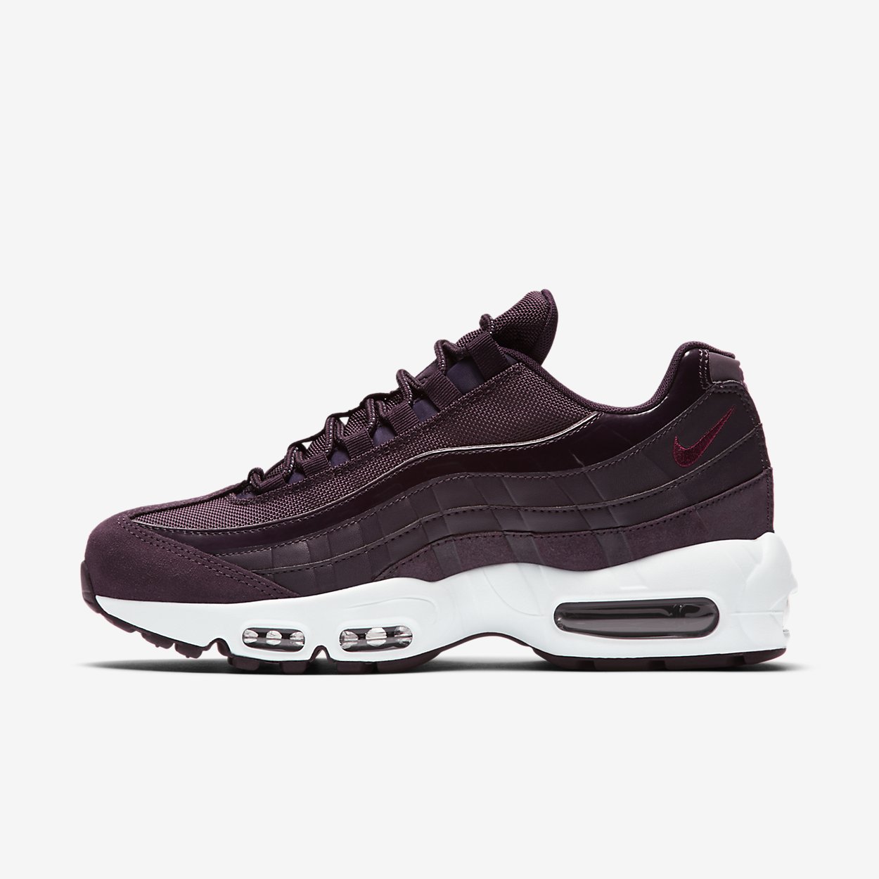 Une jolie teinte bordeaux sur cette Nike Air Max 95 pour fille.