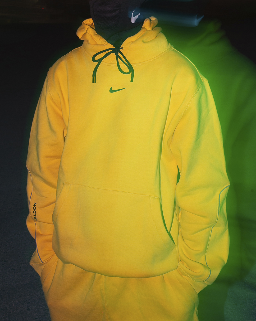 Deux sweats à capuche en coton seront ainsi déclinés dans les coloris noir et or au prix unitaire de 120€. De nombreuses finitions de couloir, tantôt noires ou jaunes, pimentent le design et renvoient aux deux couleurs de la collection. Ils permettent également d’afficher le branding Nike et NOCTA, sur la poitrine ainsi qu’au dos. Les inscriptions “C.L.” qui apparaissent sur l’ensemble des vêtements font référence au nom du prochain album de Drake Certified Lover Boy qui sortira en janvier 2021.