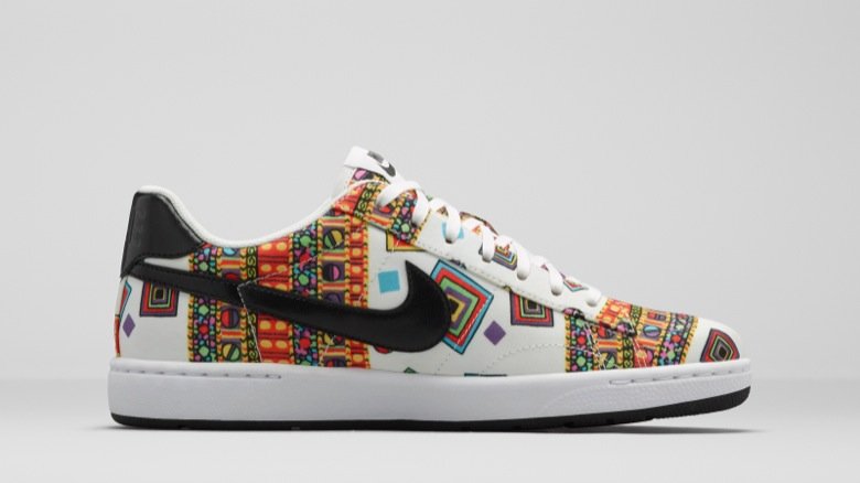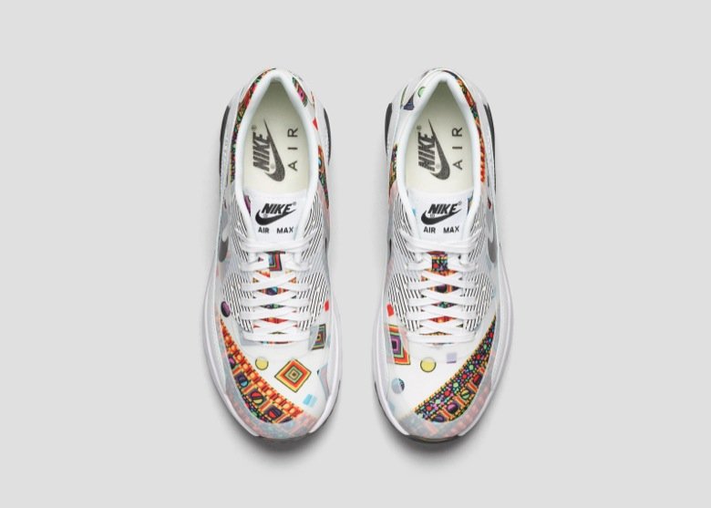 Pour la collection de l’été, c’est le motif Merlin qui a été choisi. Conçu en 1972 pour une écharpe en soie, il est plutôt original et change un peu de ce que l’on a pris l’habitude de voir chez Liberty. Le design de l’imprimé géométrique Merlin se caractérise par son effet ludique d’entrelacement de carrés et de cercles concentriques. Plusieurs modèles arboreront ce design avec, cette fois-ci encore, quelques sneakers inédites sur ce type de programme. C’est tout d’abord la Nike Air Rift qui sera au programme, pour célébrer ses 20 ans. Cinq autres modèles font partie de la collection Nike x Liberty Summer 2015 : Tennis Classic Ultra, Air Max 90 Ultra, Zenji, Air Max Thea et Cortez. Le mix de cet imprimé rétro avec des sneakers très modernes est plutôt réussi.
