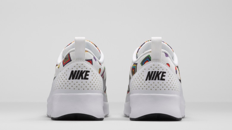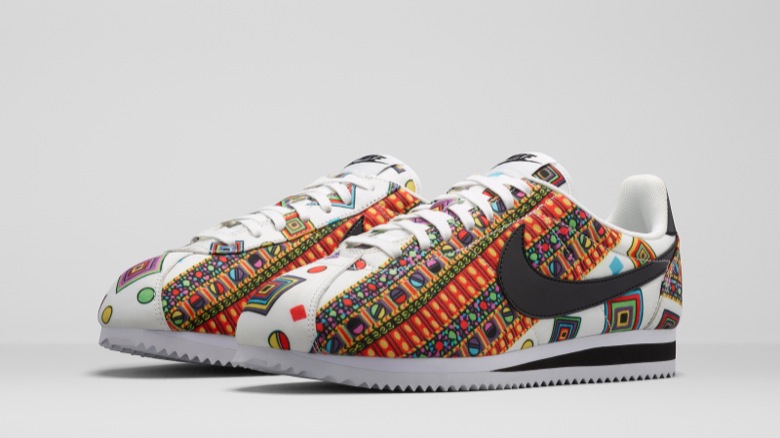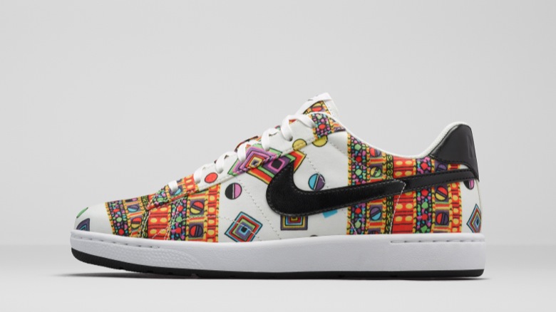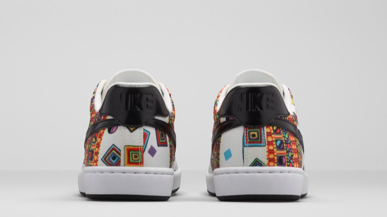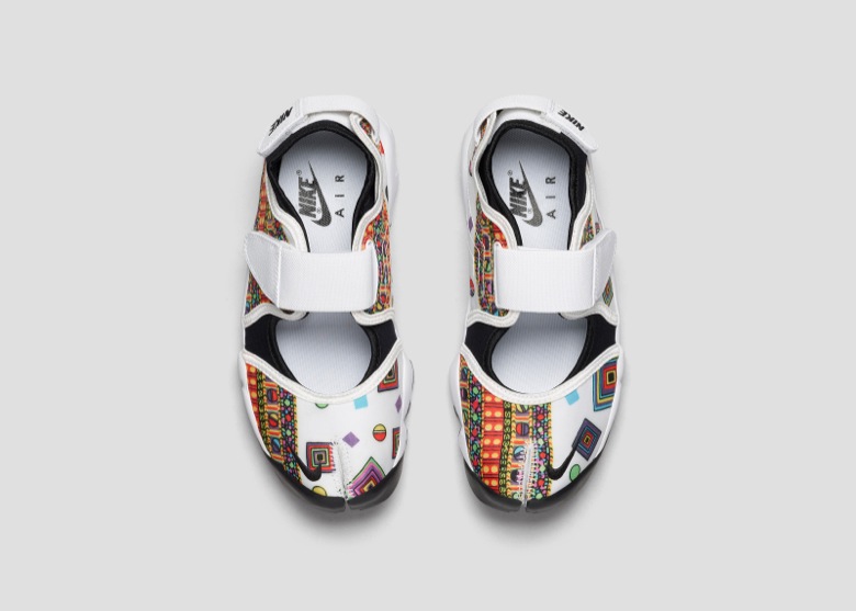 Pour la collection de l’été, c’est le motif Merlin qui a été choisi. Conçu en 1972 pour une écharpe en soie, il est plutôt original et change un peu de ce que l’on a pris l’habitude de voir chez Liberty. Le design de l’imprimé géométrique Merlin se caractérise par son effet ludique d’entrelacement de carrés et de cercles concentriques. Plusieurs modèles arboreront ce design avec, cette fois-ci encore, quelques sneakers inédites sur ce type de programme. C’est tout d’abord la Nike Air Rift qui sera au programme, pour célébrer ses 20 ans. Cinq autres modèles font partie de la collection Nike x Liberty Summer 2015 : Tennis Classic Ultra, Air Max 90 Ultra, Zenji, Air Max Thea et Cortez. Le mix de cet imprimé rétro avec des sneakers très modernes est plutôt réussi.