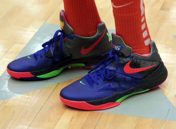 Les matchs d’exhibition s’enchainent et la saison ne devrait pas reprendre d’ici 2012. Kevin Durant présente son nouveau modèle avec un coloris « Nerf » (comme le jouet Hasbro).