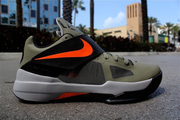 Kevin Durant et les Thunder sont qualifiés pour le second tour des playoffs et ont déjà joué leur premier match contre les Lakers qu’ils ont largement gagné. Kevin Durant a su montrer qu’il avait une mentalité de guerrier pour remporter son premier titre NBA. Le fera-t-il avec la Nike Zoom KD IV Rogue Green déjà sortie aux Étas-Unis ? Ce coloris d’inspiration militaire rappellera à certains la Air Jordan IV Undefeated.