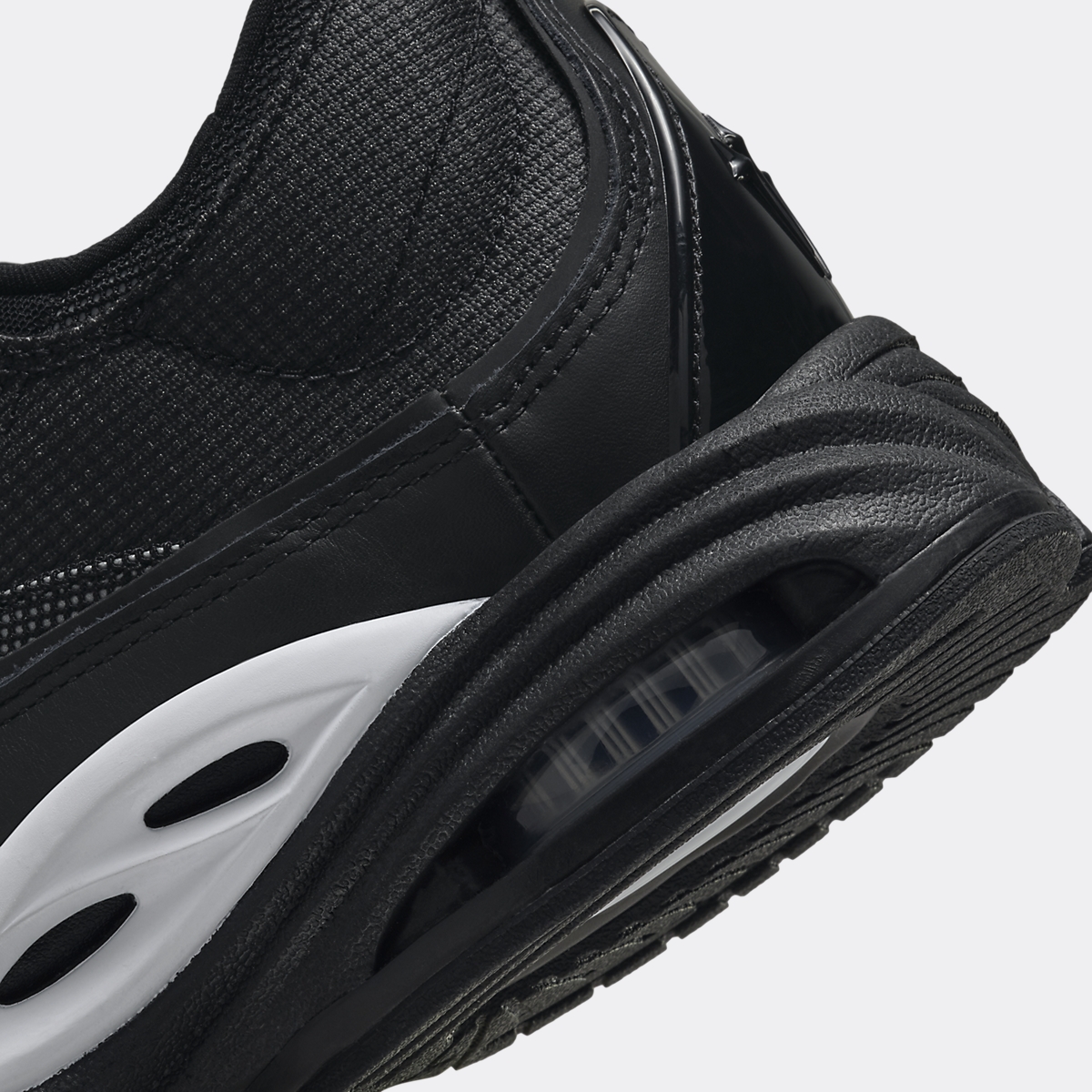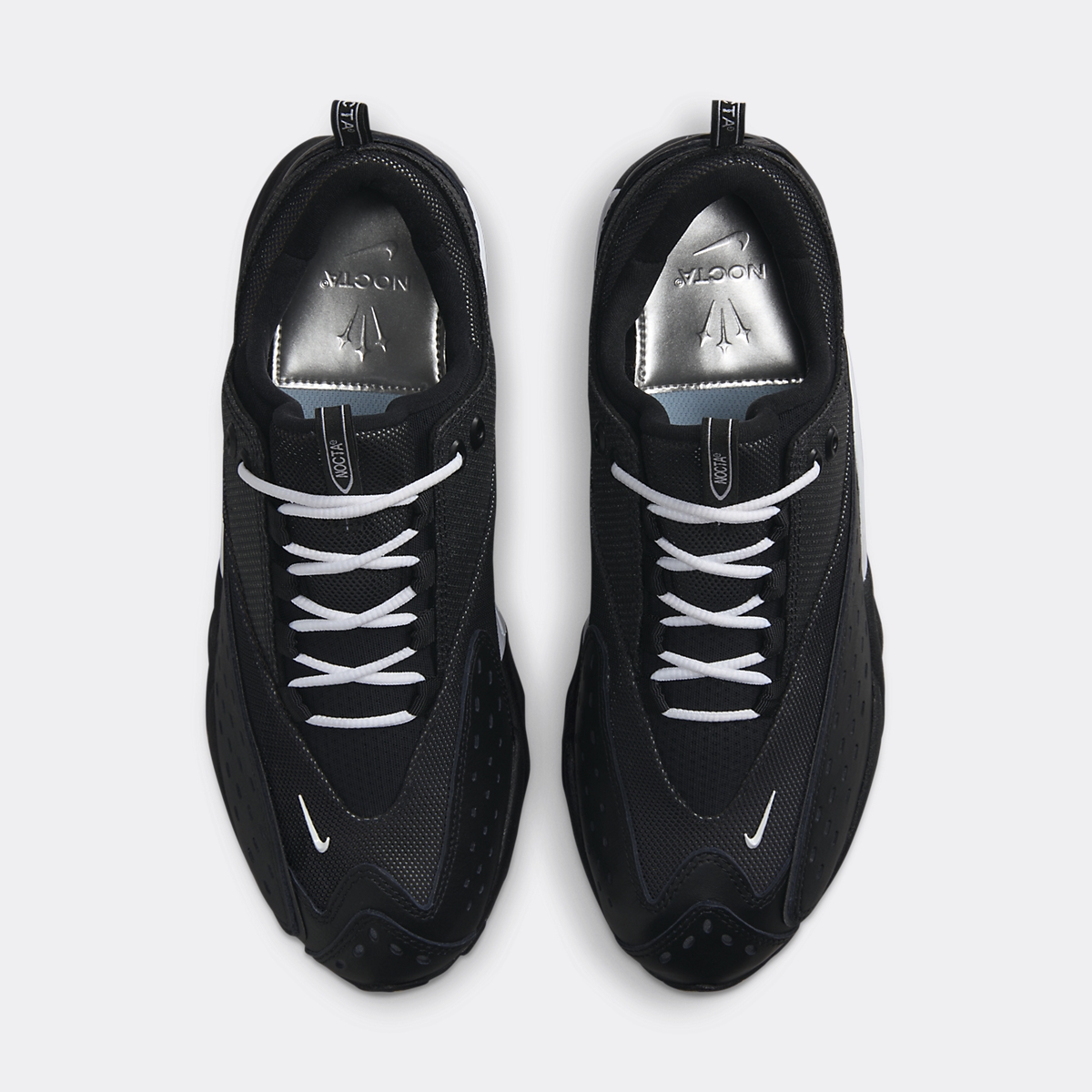 Prévue de sortir le 1er février, la Nocta x Nike Air Zoom Drive Black White reprend la silhouette du modèle de 1999. La tige s’habille de mesh grillagé noir, doublé d’une couche de matière réfléchissante. Ce mesh est visible sur les panneaux latéraux et le col de cheville. La base de l’empeigne est renforcée d’empiècements en cuir noir perforé. Un mini Swoosh blanc orne la toebox et se marie aux lacets ronds. Le sommet de la languette porte une tirette noire, signée d’une inscription Nocta blanche. On retrouve la même tirette au talon surmontant une pièce en TPU noir vernis. Elle affiche le trident Nocta, qui se retrouve également sur la semelle intérieure argent. La paire repose sur une semelle intermédiaire noire, relevée d’un empiècement blanc en son milieu. Elle possède également une unité d’Air visible, laissant apparaître la technologie Zoom. Une semelle extérieure noire finalise cette retro revisitée par Drake.