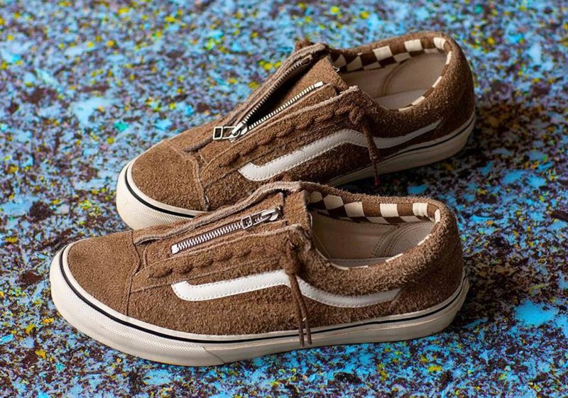 Ce projet collaboratif reprend les codes adoptés sur le duo de Sk8-Hi. Les deux silhouettes proposées pour ce nouveau drop, la Old Skool, sont ainsi toutes deux très sobres, l’une marron et l’autre noire, et seront idéales pour la saison automnale qui approche. La construction est également commune à ces deux paires conçues dans un suede hairy robuste et qui résistera aux intempéries. Autre élément original pour cette sortie, l’absence de lacets. Ils sont remplacés ici par un zip argenté directement appliqué sur la languette. Le haut de la languette est également insolite car il offre une conception proche de celle des mocassins avec une bande de lacets latérale. Nonnative a également doté la paire de straps sous la languette pour pouvoir la porter même avec le zip ouvert.