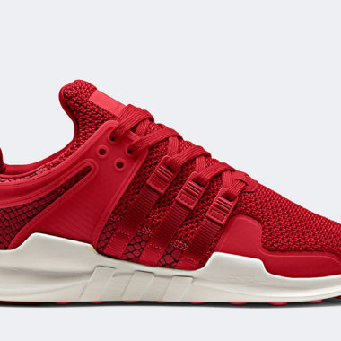 En cette fin d’année, un tout nouveau pack est donc proposé par adidas avec trois EQT Support ADV « Snakeskin ». Trois coloris forts, rouge, noir et blanc, le composent et sont l’étendard du nouveau look qui sera développé sur les futures paires. Il sera composé de couleurs tonales sur l’empeigne principale. Le branding de la marque apparaît très sobrement sur la languette de même couleur. La cage en TPU reste bel et bien présente. Un choix de semelle blanche a été fait, offrant un peu de piment à la paire rouge et à la noire tandis que la blanche pourrait se rapprocher d’un coloris « triple white ». Comme son nom l’indique, chaque paire de ce pack a une particularité : la présence d’un matériau s’apparentant à la peau de serpent, nervuré et slalomant sous la cage, englobant le talon et une partie de chaque côté de la chaussure.