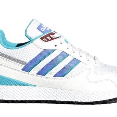 La première version est à dominance blanche. Plusieurs empiècements noirs sont présents notamment pour la toebox et la partie s’apparentant au mudguard. Les Trois Bandes sont rose fuschia avec une touche de violet qui est déclinée sur une partie de la semelle ainsi que le rembourrage textile intérieur. Le branding adidas au look vintage qui s’affiche sur la languette exhibe un code couleur rose lui aussi. La deuxième paire reprend l’ensemble des éléments cités. Toutefois, la paire est plus claire, un mudguard blanc ayant été choisi au détriment d’un coloris noir. Un bleu turquoise est également apposé en lieu et place du violet de la première sneaker. On retrouve pourtant cette couleur pâle pour le branding et la touche de couleur sur les bandes. Côté construction, chaque sneaker arborera une empeigne associant du mesh et du suede.
