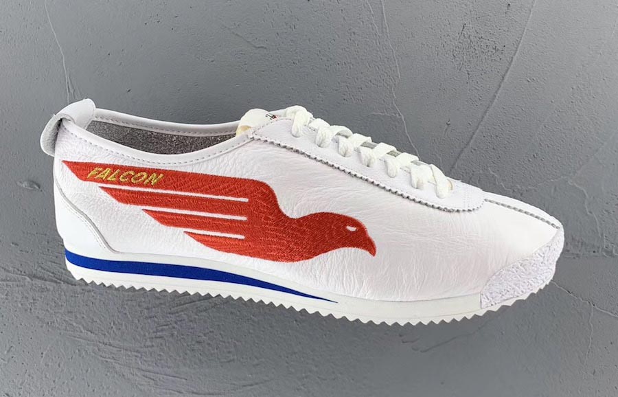 La première paire proposée est équipée du Swoosh original conçu par la graphiste Carolyn Davidson. Entièrement brodé, il a la particularité d’être plus fin que le design tel qu’on le connaît aujourd’hui. Les deux autres paires reprennent des logos vintage avec des noms de marque alternatifs qui avaient été initialement évoqués en remplacement de « Blue Ribbon Sports » avant de finalement devenir Nike en référence à la déesse grecque de la victoire. La première paire affiche donc le logo Moon Dimension Six sur la partie latérale tandis que la dernière version affiche le logo Peregrine avec son faucon dans un coloris rouge.