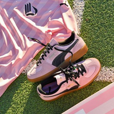 Pour cette capsule Palermo FC x Puma Collection, la firme bavaroise et les aigles rose et noirs ont choisi de revisiter la classique Puma Palermo. Véritable icône des stades de foot dans les années 80, la paire revient dans un coloris spécialement imaginé pour le club de Palerme. La Puma Palermo FC Bright Pink affiche une silhouette basse avec une tige en nylon rose pâle. Il est visible sur une partie de la toebox et les panneaux latéraux. L’empeigne est renforcée par des empiècements en cuir suédé rose sur la toebox, les passages de lacets et le talon. La languette rose porte un cartouche doré avec le logo Puma et le nom du modèle. Les lacets plats noirs s’accordent aux Formstrip latéraux, brodés de blanc. Ils sont surmontés d’une étiquette aux inscriptions dorées. Le heeltab porte un cartouche noir au félin doré sur un pied, et un logo du club sur l’autre. La paire repose sur une semelle en gomme naturelle et finalise ce design classique de la firme bavaroise.