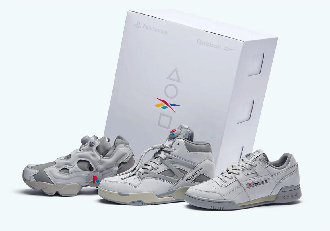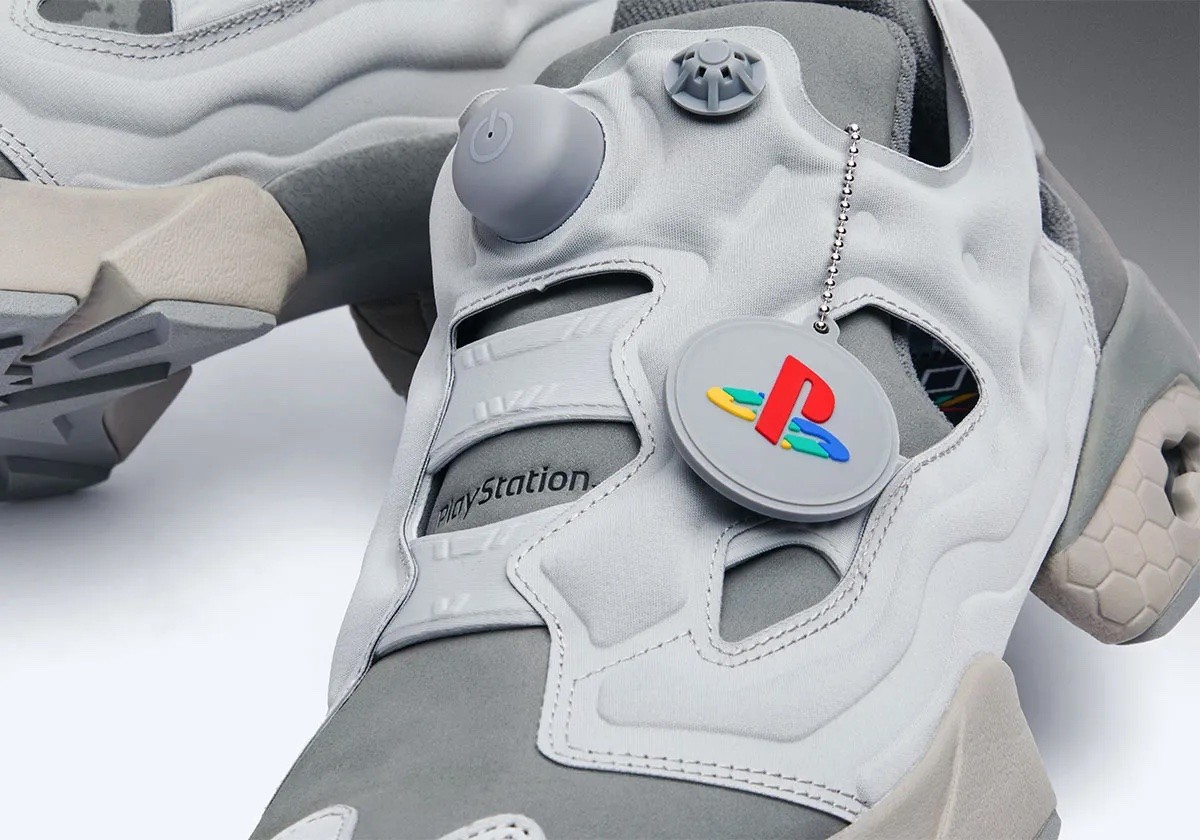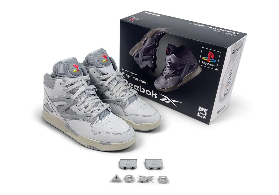 La collection compte trois silhouettes : la Reebok Workout Plus, la Reebok Pump Omni Zone II et la Reebok Instapump Fury 94. Chaque paire est rattachée à une région particulière : Royaume-Uni, États-Unis ou Japon, rappelant la manière dont la Playstation a conquis le monde à travers ses marchés d’origine. Ces modèles reprennent les codes visuels de la console première du nom : teintes grises rappelant le boîtier, finitions nostalgiques, logos discrets et clins d’œil ludiques. La Reebok Workout Plus adopte un style simple mais chargé de détails. Avec deux options de laçage et une attache lacelock amovible rappelant les cartes mémoire, elle incarne l’esprit casual gaming. La Reebok Pump Omni Zone II se distingue par sa pompe personnalisée aux couleurs Playstation, des embouts métalliques, deux systèmes de laçage et des motifs rétro qui évoquent les contrôleurs classiques. Enfin, la Reebok Instapump Fury 94 pousse le concept vers l’ultra-nostalgie : une “pump ball” avec des inscriptions gaming et des broderies Playstation qui font directement écho au lancement japonais de 1994.