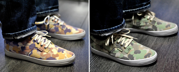 La marque anglaise Pointer propose dans sa collection Printemps/Eté 2012 deux paires avec un motif camouflage. Le modèle Pointer A.F.D.est une sneaker en toile assez épaisse avec un aspect légèrement délavé. Les Pointer A.F.D Desert Camo et Pointer A.F.D. Green Forest Camo sont disponibles sur notre boutique en ligne SNKRS.