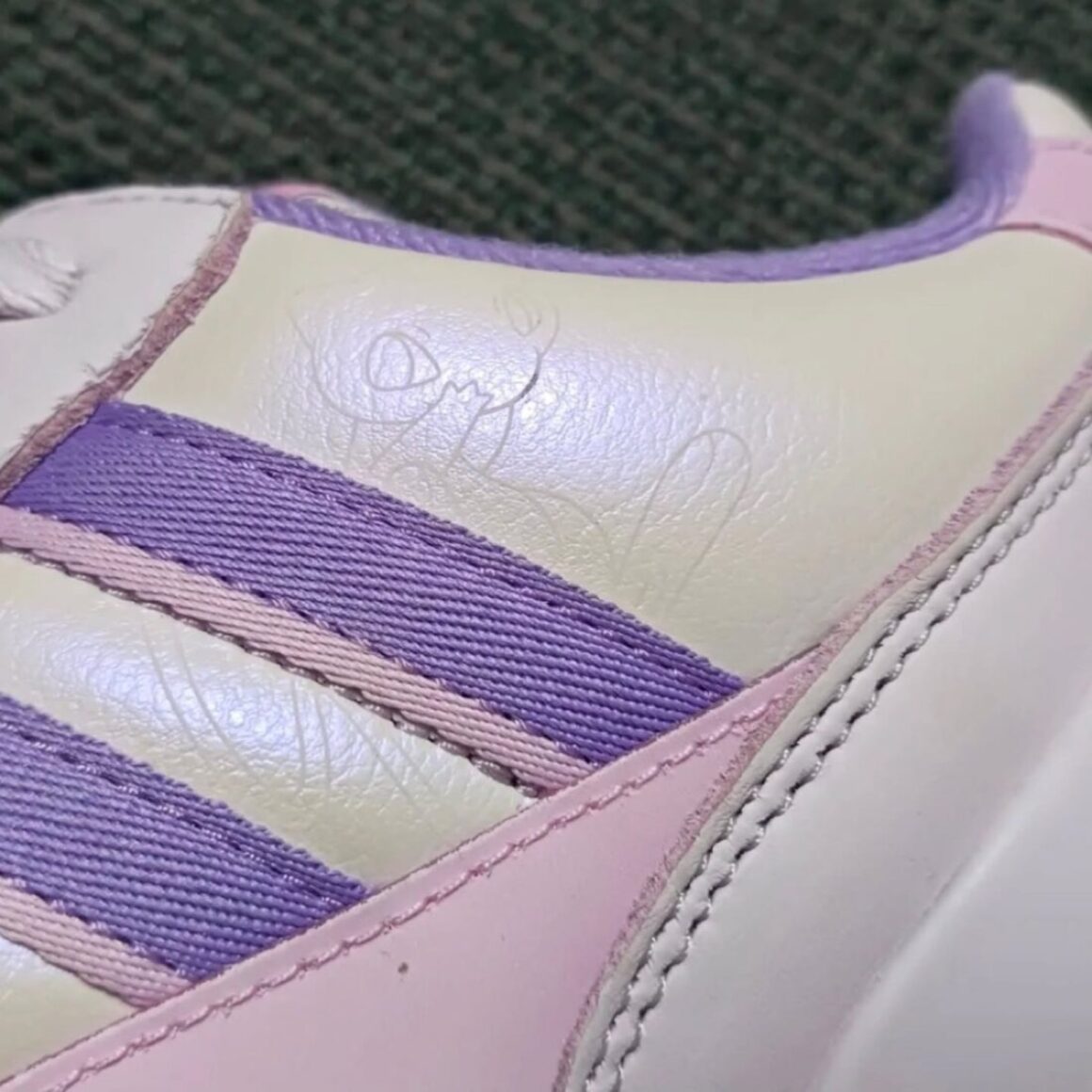 La adidas ZX 8000 se reconnaît instantanément par sa forme élancée, sa construction technique typique des running des années 80 et 90, et ses lignes fluides qui évoquent mouvement et dynamisme. Pour cette collaboration, adidas conserve la structure du modèle, avec du mesh respirant sur l’empeigne, des renforts en cuir suédé, et une semelle intermédiaire en EVA sculptée. Ici, elle est réinterprétée à travers une palette inspirée de Mewtwo. Les nuances dominantes tournent autour de gris clair, de violet lavande et d’accents mauves profonds, évoquant à la fois la puissance psychique du Pokémon et son esthétique visuelle originale. La base de la sneaker oscille entre un gris neutre et un blanc cassé, offrant une toile lumineuse qui laisse ressortir les accents violets sans surcharge visuelle. Ces touches colorées se placent stratégiquement : sur les renforts latéraux, le branding adidas, et sur les inserts de la languette. La palette chromatique joue avec les contrastes pour créer une paire qui attire l’œil sans être criarde, combinant une esthétique raffinée à une certaine énergie mystérieuse, un clin d’œil direct aux pouvoirs psychiques de Mewtwo.