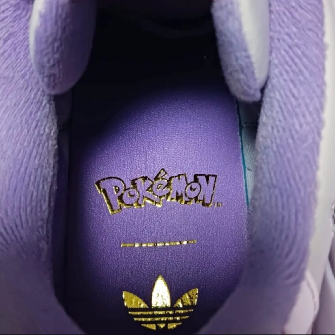 La adidas ZX 8000 se reconnaît instantanément par sa forme élancée, sa construction technique typique des running des années 80 et 90, et ses lignes fluides qui évoquent mouvement et dynamisme. Pour cette collaboration, adidas conserve la structure du modèle, avec du mesh respirant sur l’empeigne, des renforts en cuir suédé, et une semelle intermédiaire en EVA sculptée. Ici, elle est réinterprétée à travers une palette inspirée de Mewtwo. Les nuances dominantes tournent autour de gris clair, de violet lavande et d’accents mauves profonds, évoquant à la fois la puissance psychique du Pokémon et son esthétique visuelle originale. La base de la sneaker oscille entre un gris neutre et un blanc cassé, offrant une toile lumineuse qui laisse ressortir les accents violets sans surcharge visuelle. Ces touches colorées se placent stratégiquement : sur les renforts latéraux, le branding adidas, et sur les inserts de la languette. La palette chromatique joue avec les contrastes pour créer une paire qui attire l’œil sans être criarde, combinant une esthétique raffinée à une certaine énergie mystérieuse, un clin d’œil direct aux pouvoirs psychiques de Mewtwo.