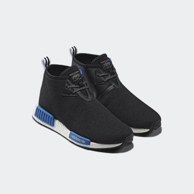 Pour la saison Summer 2017, Porter a pu retravailler la silhouette en vogue de la marque aux trois bandes avec l’adidas NMD Chukka aussi appelée NMD_C1. L’empeigne noire est faite en mesh avec du nylon pour la partie intérieure. Le contraste est apporté par les tabs de couleur bleu au niveau de la semelle Boost. Cette sneaker sera accompagné par deux sacs fabriqués par Porter avec les mêmes couleurs que la paire.