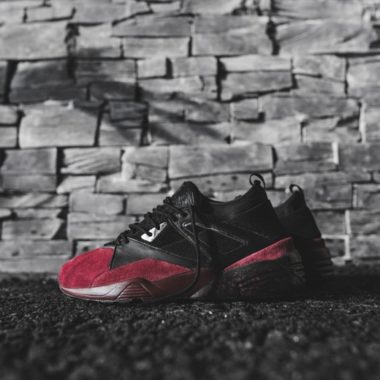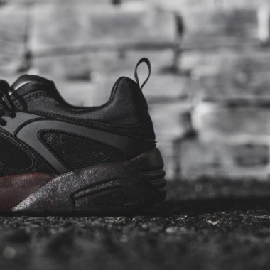 Les deux silhouettes Trinomic ont subi un traitement très foncé dont l’inspiration est le personnage du vampire. Les Puma Blaze of Glory OG et Puma Blaze of Glory Sock sont déclinées dans un mix de noir et de rouge, ce dernier rappelant la cape dont est affublé le mort-vivant. C’est une association de nubuck et de cuir premium que l’on retrouve sur l’empeigne. La semelle extérieure tachetée rappelle des petites marques de sang pour continuer sur le même thème.