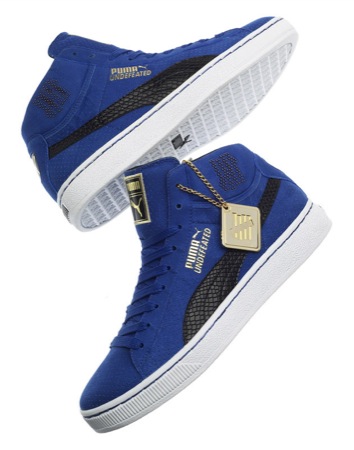 C’est donc le 7 février que sortira la prochaine collaboration entre les marques Puma et Undefeated. 4 coloris sont prévus et un extra, couleur or, beaucoup plus limité. La paire est en suede perforé et snake skin. La semelle intérieure dorée est siglée du logo Undefeated, également présent au niveau de la cheville. Découvrez le modèle en détails dans la suite.