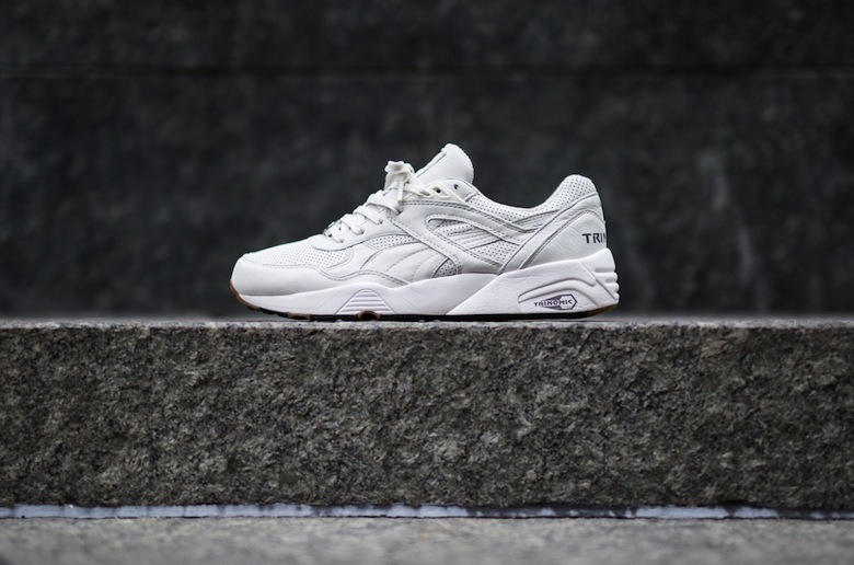 Ces deux silhouettes symboliques, issues du pack « Perforated », de la marque ont été revisitées pour arborer une empeigne faite de nubuck perforé de manière intégrale pour la Puma States alors que la Puma R698 possède uniquement quelques empiècements en perforation. Cette dernière est également dotée de la technologie Trinomic ce qui est facilement remarquable vu que son nom est apposé sur le talon. Enfin, l’intérieur de cette Puma R698 est réalisé à partir d’un molleton retourné pour un confort optimal. La Puma States dispose, quant à elle, d’un upper en cuir perforé et d’une semelle extérieure blanche pour la version grise et blanc cassé pour les deux autres.