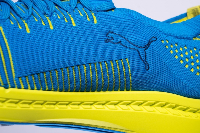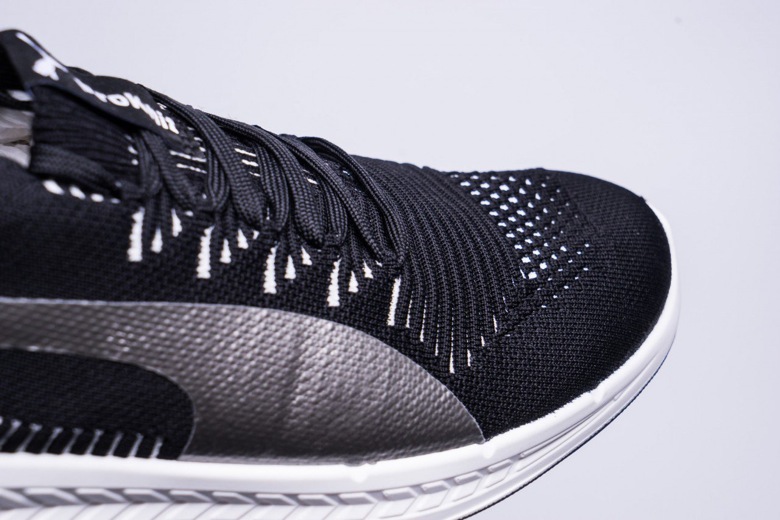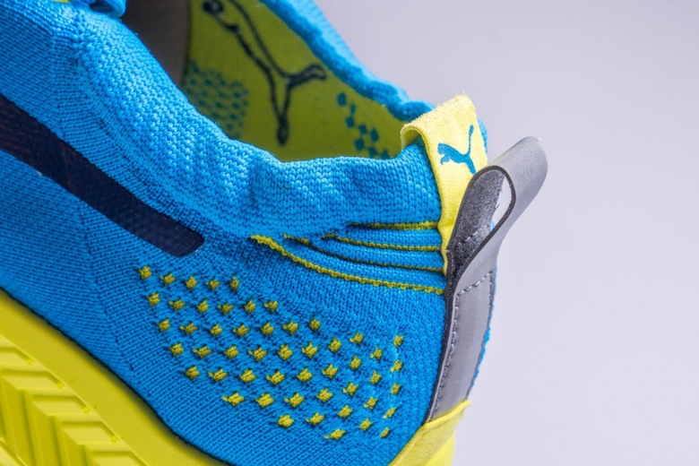 Le chausson de ce premier modèle à disposer du Puma Proknit semble fait d’une pièce avec des adaptations du tissage en fonction des parties du pied.