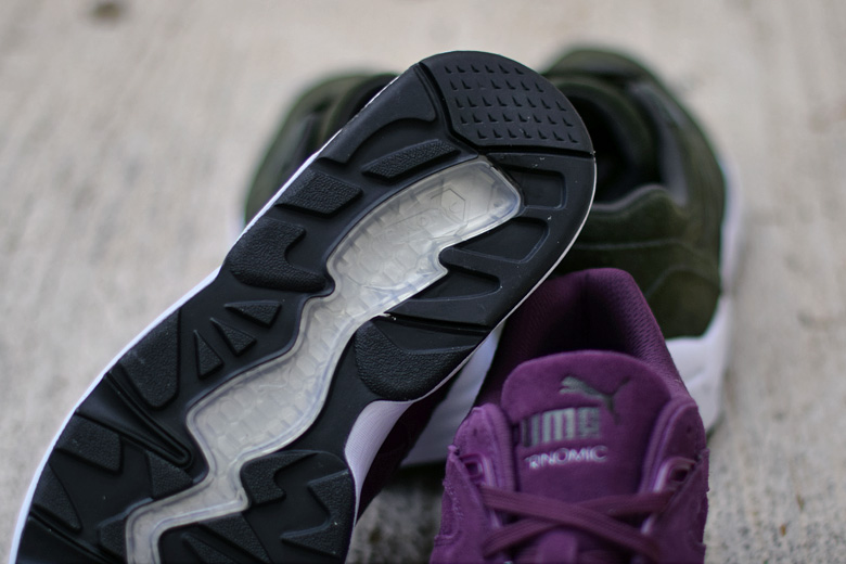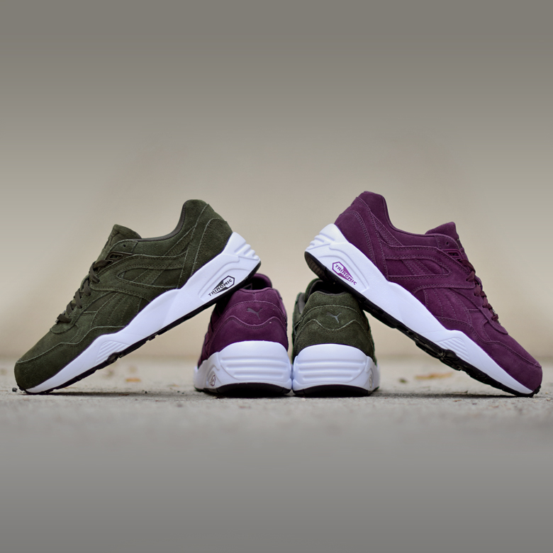 Pour la saison automne/hiver 2015, deux autres coloris sont également de la partie avec les déclinaisons Forest (un vert foncé) et Plum (un bordeaux qui tire vers du violet) du même modèle. Les sneakers sont en daim monochrome avec les lacets dans la même teinte et le petit rappel de la couleur sur le logo Trinomic de la semelle extérieure.
