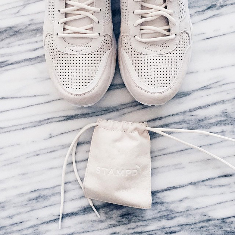 Comme le montrent les photos qui suivent, la Puma R698 Stampd arrivera avec une autre paire de lacets livrée dans un dust-bag en cuir.