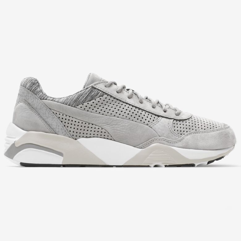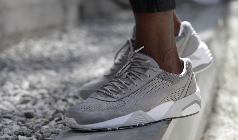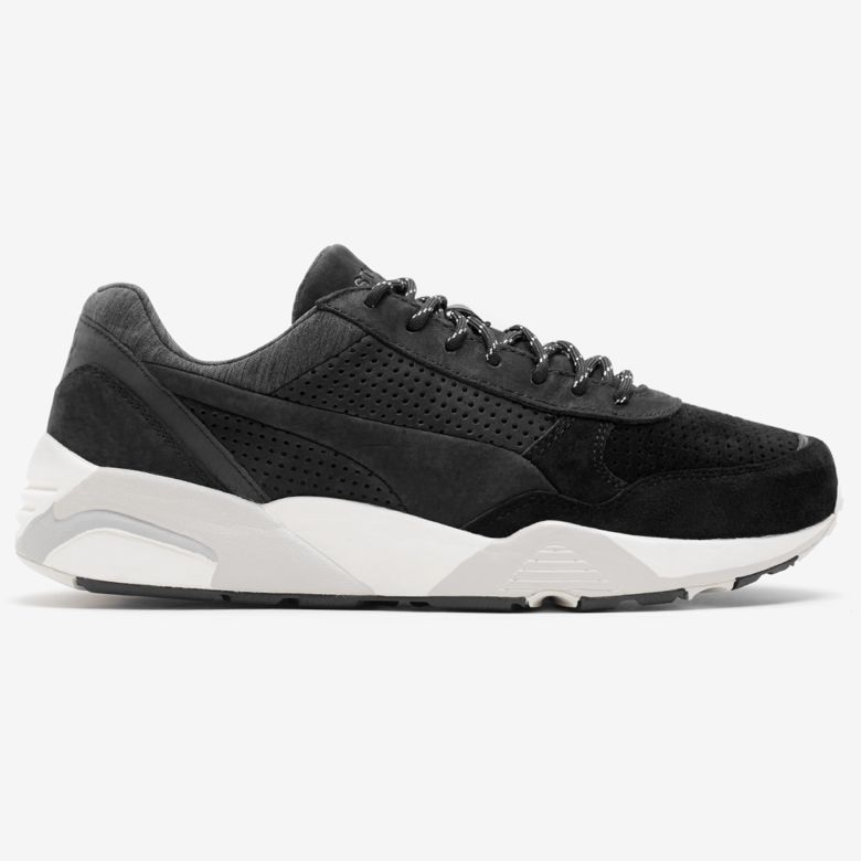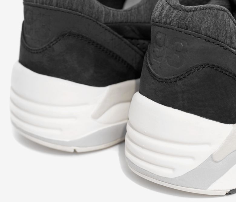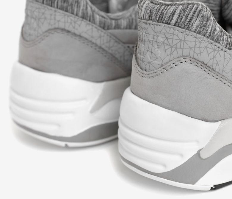 Concernant la partie footwear, ce sont deux Puma R698 qui reçoivent les mêmes traitements que les Trinomic Sock avec comme matériaux du nubuck lisse ou perforé, des parties réfléchissantes et d’autres en jersey chiné pour le tour des chevilles et l’intérieur du pied.