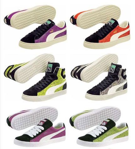 Pour ceux qui ont rate les Puma MTV YO et qui voulaient se les procurer surtout pour leurs coloris voici quelque chose qui pourra surement vous plaire. Ces paires en Reptile basses ou montantes ressemblent particulierement aux modeles MTV et sortiront au doux prix de 80/90 dollars.