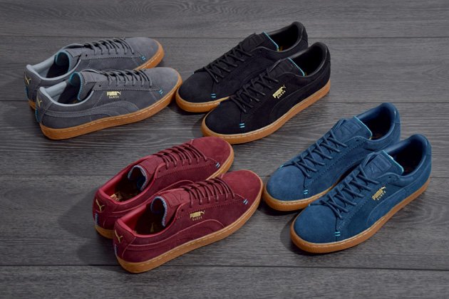 La Puma Suede est de retour cette saison dans une combinaison qui nous plait bien : daim et semelle gomme. Quatre coloris ont été produits et chaque paire est accompagnée de lacets ronds et cirés qui plairont peut-être davantage à ceux qui ne se voient pas porter ce modèle avec ses iconiques fat laces. De petites finitions ont été ajoutées sur ce pack « crafted » avec les surpiqûres bleues présentes à l’avant, sur la languette et le talon. Cette série de Puma Suede de la saison printemps/été 2014 est en vente en ligne sur SNKRS.