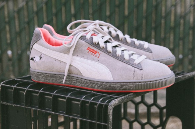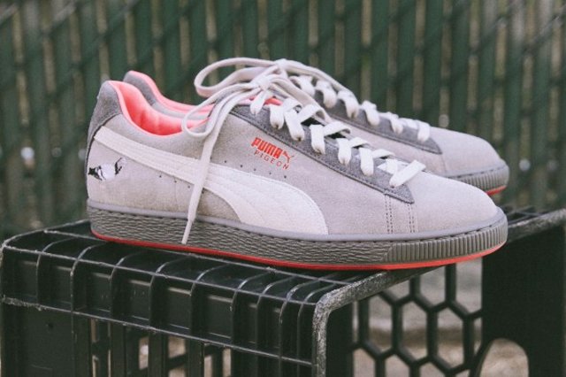 Après Nike et New Balance, la marque new-yorkaise Staple va appliquer son coloris « Pigeon » à une paire de Puma. C’est la Puma Suede qui a été choisie et c’est une fabrication japonaise pour ce modèle dans les tons de gris avec le pigeon brodé au talon. La Puma Suede « Pigeon » sortira au Reed Space à New York le 17 avril. Environ 500 paires auraient été produites.