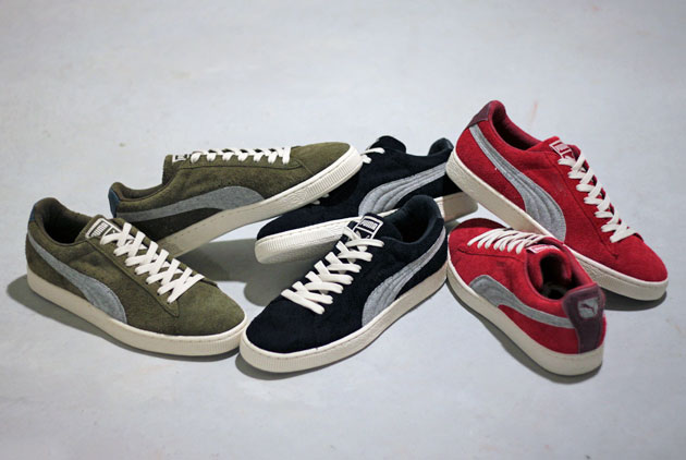 La Puma Suede est de retour cet automne dans trois versions qui composent le « Rugged Pack ». Chaque paire est en daim monochrome (khaki, noir et rouge) avec sa stripe en toile très épaisse grise. Le style de la paire est assez classique mais le rendu des matériaux lui confère un look de saison plus travaillé que les versions basiques.
