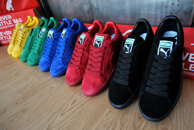 Puma sort un nouveau pack, le Puma Suede Tonal Pack, réunissant cinq paires de Puma Suede monochromes. C’est la première fois que l’on découvre des Puma Suede unies et le résultat est plutôt réussi. Cinq coloris sont disponibles en ligne sur SNKRS :Puma Suede bleu, Puma Suede rouge, Puma Suede noir, Puma suede vert et Puma Suede jaune. Découvrez toutes nos images dans la suite.