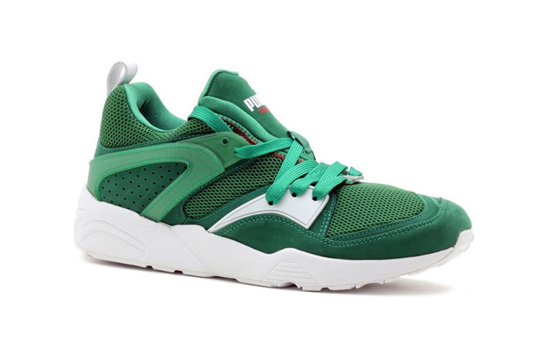 Cette saison, Puma a décidé de recouvrir une série de sneakers disposant de l’amorti alvéolé « Trinomic » de ce fameux vert afin de constituer le Puma Green Box Pack. Les amateurs des runnings Puma seront gâtés puisqu’on retrouvera ici une XT2 Plus, une Blaze of Glory, une R698 ainsi qu’une XS850. Côté matériaux, rien de bien novateur puisque chaque sneaker disposera des matières que l’on retrouve habituellement sur celles-ci comme le mesh, la feutrine et le cuir nubuck.