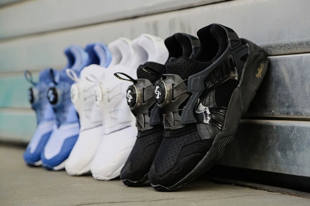 La marque PUMA collabore avec l’artiste New Yorkaise Sophia Chang pour sa collection automne/hiver 2014. Cette collaboration englobe des sneakers et une gamme de vêtements dans une déclinaison homme et femme. L’artiste a donc premièrement travaillé sur trois paires de Trinomic Disc Blaze (blanc, bleu et noir) ainsi qu’une paire de Puma Basket Classic noire reprenant des dessins en surbrillance. Pour la partie vêtements, la collection se compose de plusieurs teeshirts, vestes zippés et pulls « Brooklynite ». Le lookbook reste dans l’ambiance New Yorkaise puisque les photos sont prises sur un terrain de basketball avec, au loin, une vue sur Manhattan. Cette collection est à venir chez une sélection de revendeurs PUMA.
