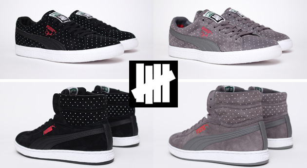 Dernier projet de l’année réunissant Puma et Undefeated, cette micro-dot collection est composée de deux coloris de Puma Clyde et de Puma RS. Les quatre paires, présentées en détails dans la suite, sont disponibles en ligne sur SNKRS.
