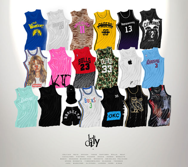 Les maillots NBA vont changer. On a vu adidas créer des maillots à manches qui n’ont, pour l’instant, pas eu le succès escompté. La NBA avait également pour projet de s’inspirer du football afin d’apposer des marques sur les futurs maillots NBA. Aucun sport US n’arbore de pubs sur ses maillots, sauf à l’entrainement. Alors que la décision de mettre de la pub a été suspendue, on sait déjà que le futur commissioner, Adam Silver (le remplacement du mythique David Stern), favorise cette évolution qui rapporterait des dizaines de millions de dollars par an. Le graphiste Dead Dilly a eu l’idée de créer des maillots un peu plus sympas en les « habillant » de certains motifs et logos très connus : New York Knicks « Supreme », Boston Celtics « Bape », Los Angeles Clippers « Banksy… Nous vous laissons découvrir ça dans la suite.