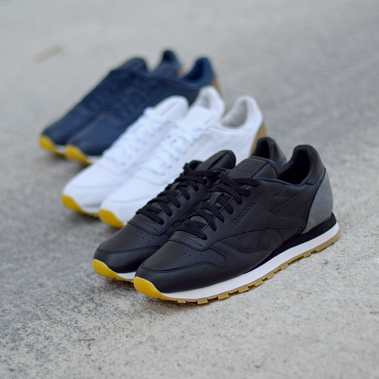 Ici ce sont trois paires de Reebok CL Leather très sobres qui ont été imaginées bien que de nombreux détails ont été ajoutés rendant ces sneakers assez intéressantes.