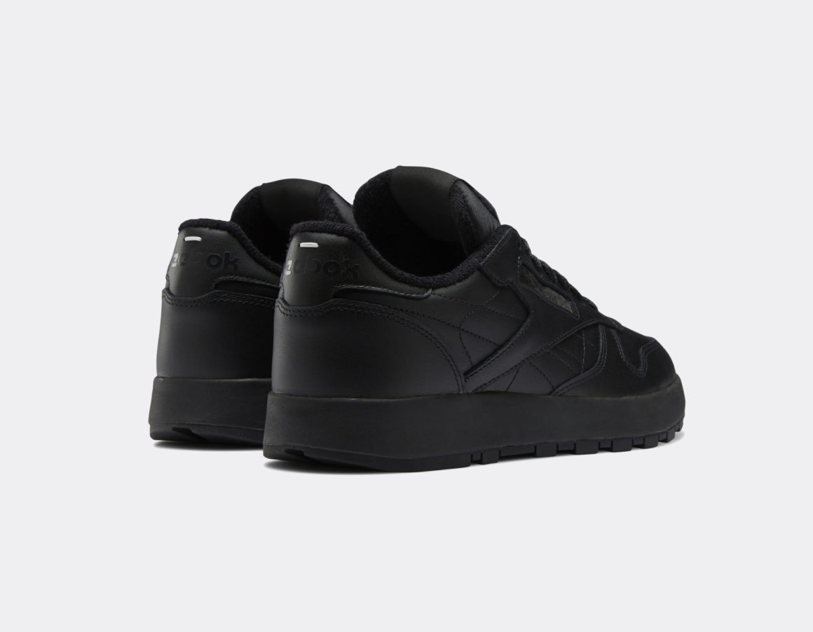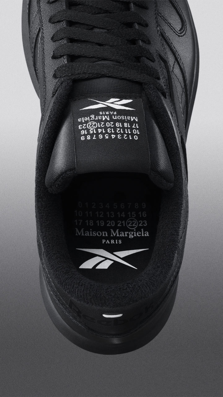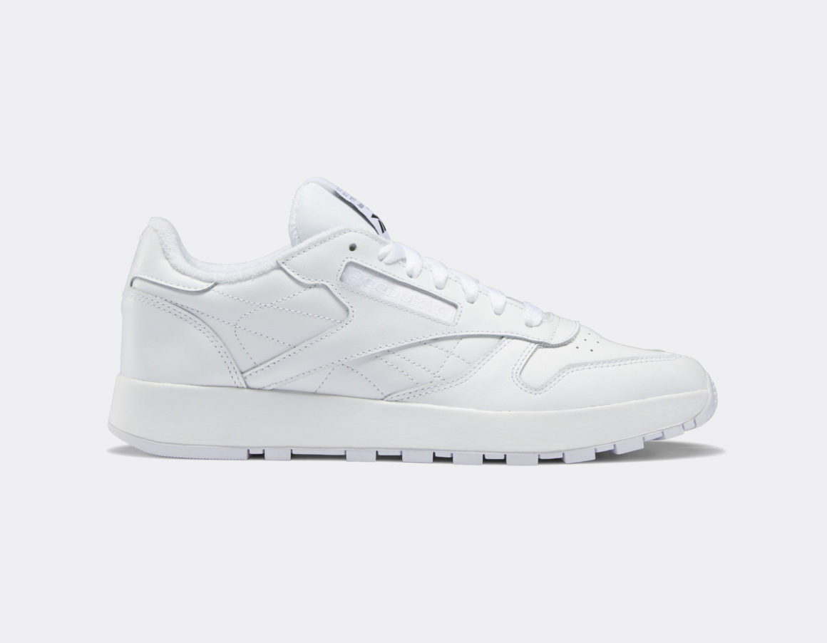 La Reebok Classic Leather est un modèle de 1983 qui s’est hissée au rang d’icône et qui reste l’un des modèles phares de la marque américaine. Construite dans un cuir lisse de grande qualité, la Classic Leather Maison Margiela reprend l’esthétique du modèle original en y apportant l’inspiration de la Tabi. C’est ainsi que la toebox se voit fendue en son milieu pour rappeler la création qui a fait l’effet d’un tremblement de terre il y a 30 ans. Le cuir et la semelle s’accordent en couleur pour un rendu monochrome que seules les inscriptions sur la languette viennent rompre. Sur celle-ci, on retrouve le Vector de Reebok surmonté de la liste des numéros des collections Margiela. Cette collaboration fait partie de la collection numéro 22, traditionnellement réservée aux chaussures de la Maison d’Anvers. Deux déclinaisons de ce modèle sont proposées, une totale noire et une totale blanche.