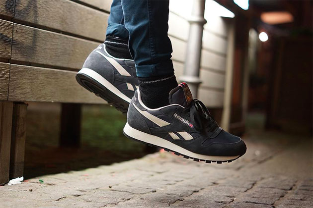 La marque Reebok fêtait les 30 ans de sa Reebok Classic Leather l’an dernier avec de nombreuses sorties. La saison Printemps/Eté 2014 sera également assez riche sur ce modèle. Nous vous avons d’ailleurs déjà présenté la première partie du pack Utility. Cette fois-ci c’est une version « vintage » de la Reebok Classic Leather avec sa languette ouverte et son logo Union Jack. La paire est daim gris foncé et nylon de même couleur. Cette Reebok Classic Leather Vintage Grise est déjà en vente sur SNKRS.