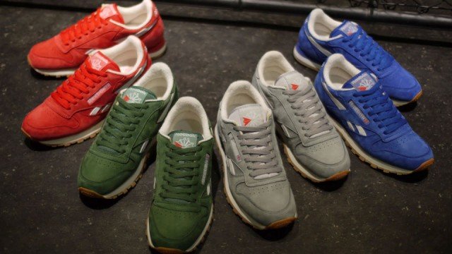 Reebok fête les 30 ans de sa Reebok Classic Leather en sortant de nombreux packs et collabs. Si les collabs n’ont pas vraiment d’intérêt avec des combos qui ne sont pas forcément très inédits, en revanche les packs plus classiques (sans mauvais jeu de mots) respectent l’histoire du modèle. Quelques séries en nubuck étaient déjà sorties en 2012 et voici un pack complet pour le printemps. La Reebok Classic Leather est déclinée dans quatre couleurs avec un léger traitement vintage, notamment au niveau de la languette et une semelle gum.