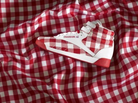 Reebok sort pour le printemps plusieurs modèles de Freestyle avec un motif vichy. Sur les modèles bleu et rouge, présentés dans la suite, le cuir est patent glossy. Le modèle noir possède un cuir sans traitement alors que la Freestyle grise a un cuir métallique argent sur toile avec carreaux gris et blancs.