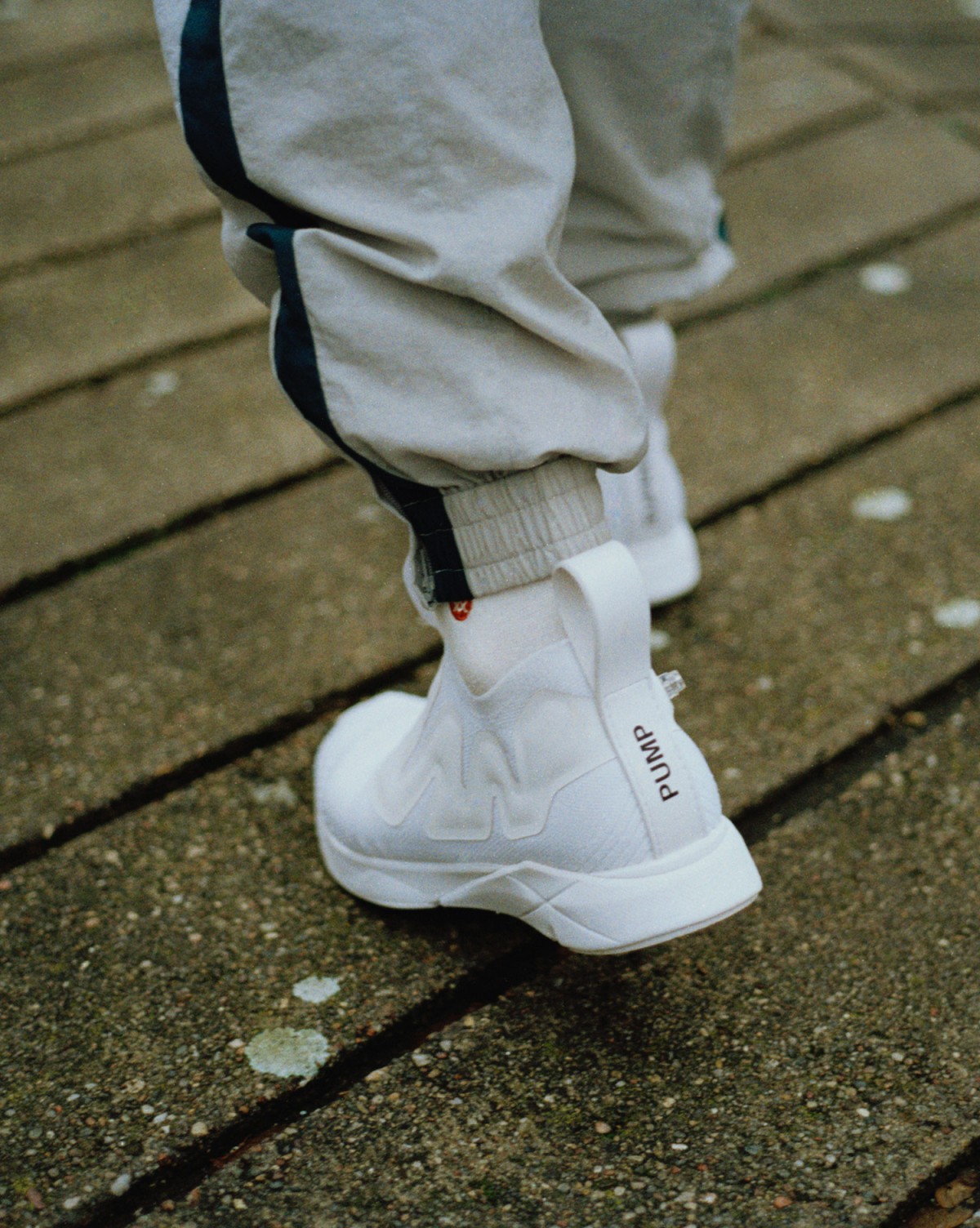 Durant les années 1980, la concurrence entre les marques sportswear était très présente et chaque entité essayait de se démarquer à coup de technologies ou innovations différentes : Air Max pour Nike, Gel pour Asics… C’est en 1989 que Reebok dévoile sa technologie Pump consistant à gonfler une membrane d’air à l’aide d’un bouton à pression afin d’ajuster au mieux la paire à son pied. Le succès fut tout de suite au rendez-vous et, bientôt 30 plus tard, Reebok continue de l’exploiter avec cette toute nouvelle silhouette construite en maille tissée de type Knit. La sneaker possède un design assez novateur avec son système Pump thermocollé tout autour de l’empeigne. La déclinaison présentée ici est toute blanche, ce qui rendra la paire facilement portable pour la saison estivale. Le seul contraste présent est affiché sur le talon où l’on retrouve la mention « Pump » inscrite en noir.